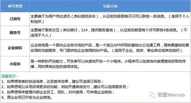 另外,微信公眾號(hào)有訂閱號(hào),服務(wù)號(hào),企業(yè)微信三種類型,對(duì)于微信公眾號(hào)的類型選擇,請(qǐng)?zhí)崆案鶕?jù)公眾號(hào)的用途,考慮清楚,選擇對(duì)應(yīng)的類型,而對(duì)于企業(yè)來(lái)說(shuō),選擇服務(wù)號(hào)是最好的選擇,所以接下來(lái),我們將以服務(wù)號(hào)為例,來(lái)為大家詳細(xì)介紹其申請(qǐng)流程。