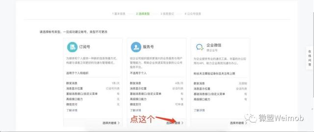 選擇賬號(hào)類型,類型選擇服務(wù)號(hào)